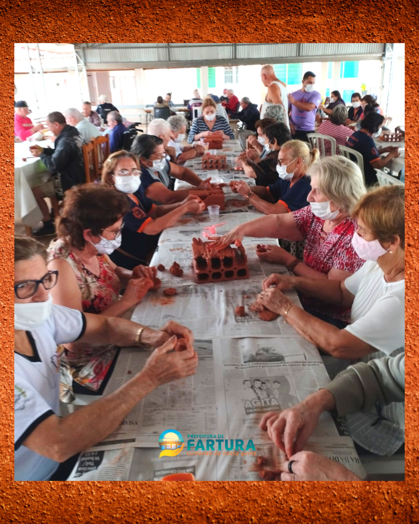 A Prefeitura de Fartura está promovendo ações relacionadas ao Mês do Idoso, comemorado dia 1º, por meio da Coordenadoria de Assistência e Desenvolvimento Social. Na segunda-feira, 10/10, uma Oficina de Esculturas de Argila envolveu os integrantes do Centr